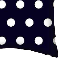 Baby/Toddler pillow case. Made of an all cotton percale fabric. Opening is in the back center and is envelope style for a secure closure. Features a beautiful 1/2 inch white polka dot print on a navy background