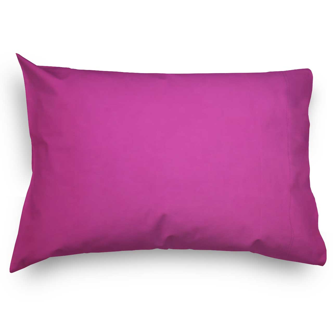 Twin pillow case. Made of an all cotton percale fabric. Side opening. Color is a solid hot pink.